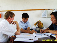 | 公司領(lǐng)導(dǎo)與客戶商討技術(shù)問題 | 公司領(lǐng)導(dǎo)與國外客人進(jìn)行技術(shù)交流 | 車間一隅 |