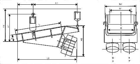 給料機(jī)的給料過程是利用特制的振動(dòng)電機(jī)或兩臺(tái)電動(dòng)機(jī)帶動(dòng)激振器驅(qū)動(dòng)給料槽沿傾斜方向作周期直線往復(fù)振動(dòng)來實(shí)現(xiàn),當(dāng)給料槽振動(dòng)的加速度垂直分量大于重力加速度時(shí),槽中的料被拋起,并按照拋物線的軌跡向前跳躍運(yùn)動(dòng),拋起和下落在瞬間完成,由于激振源的連續(xù)激振,給料槽連續(xù)振動(dòng),槽中的煤連續(xù)向前跳躍,以達(dá)到給料的目的。