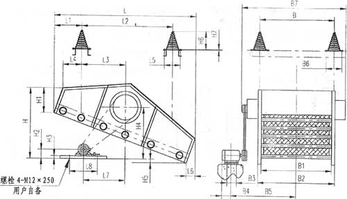 圖6 SZZ21500×4000自定中心振動(dòng)篩安裝尺寸