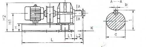 | 驅(qū)動裝置 | 電動機 | 減速器 型 號 | A | B | C | D | E | n-d1 | H | H1 | H1 | K | L | L1 | L2 | B1 | B2 | b | t | d | 重量 kg | |